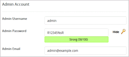 7. Under the "Admin Account" field enter the following information: